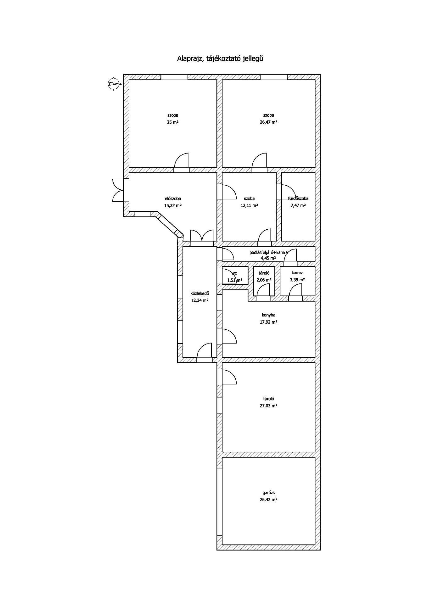 A házban három szoba , konyha, kamra, fürdőszoba és wc kapott helyet. A helyiségek elosztásából adódóan, felújítás esetén, funkciójukat több változatban is át lehet alakítani. A lakórész egy fedélszék alatt, egy kamrával, garázzsal és egy nagy tárolásra alkalmas helyiséggel folytatódik. Az egész melléképület együttes jó állapotban van.