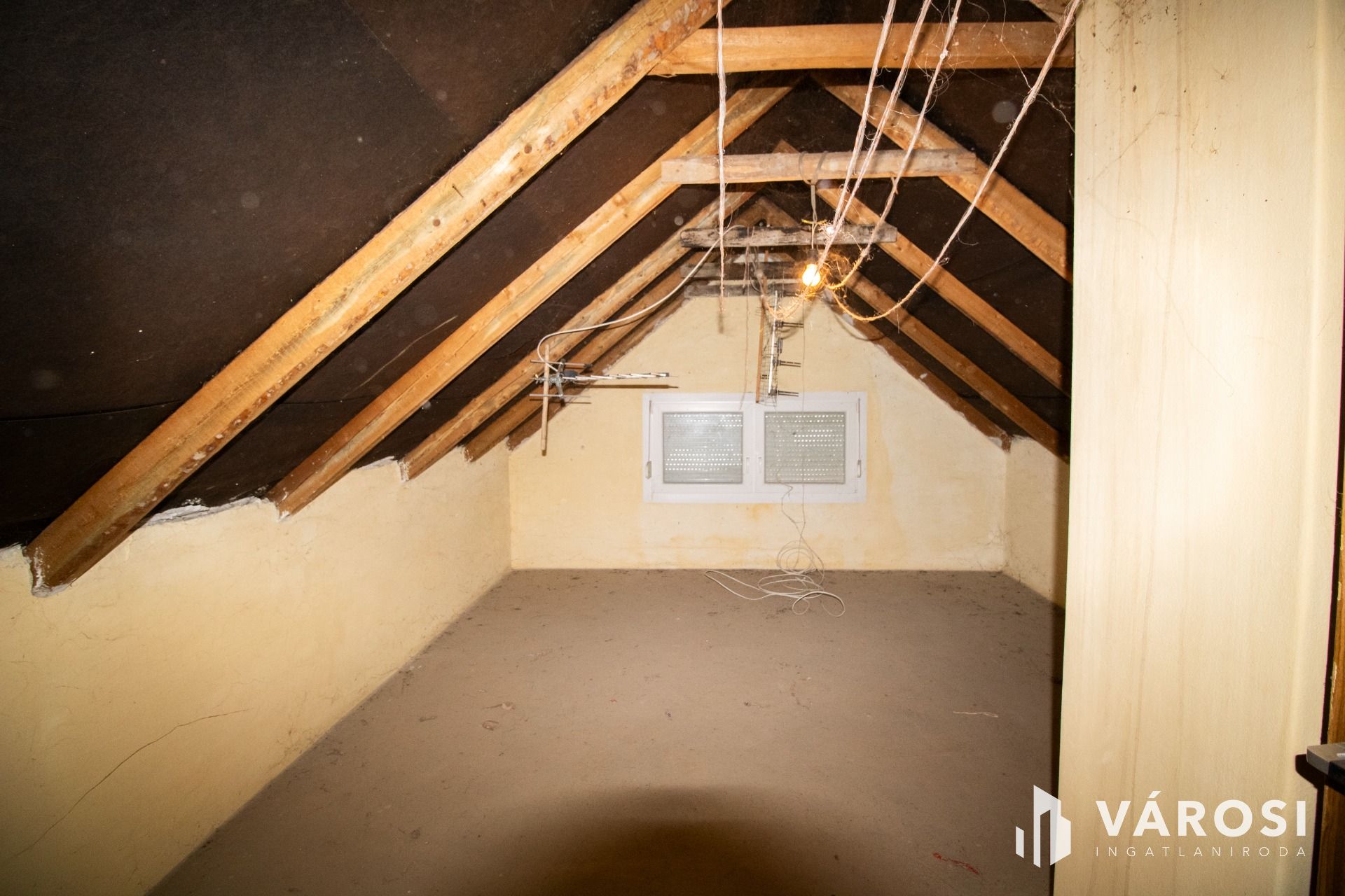 Az emeleti szint jelenleg két részre tagolt. Az egyik oldalon már új ablak került beépítésre, a víz és a szennyvíz felvezetése megtörtént, így itt egy külön szoba és akár egy vizesblokk is könnyedén kialakítható. A másik rész jelenleg padlástérként funkcionál, de adottságai alapján ez is bevonható a lakótérbe. A fűtés jelenleg hűtő-fűtő klímával megoldott, a gázkonvektorok leszerelésre kerültek, de bármikor visszahelyezhetők, a melegvíz villanybojlerrel biztosított.