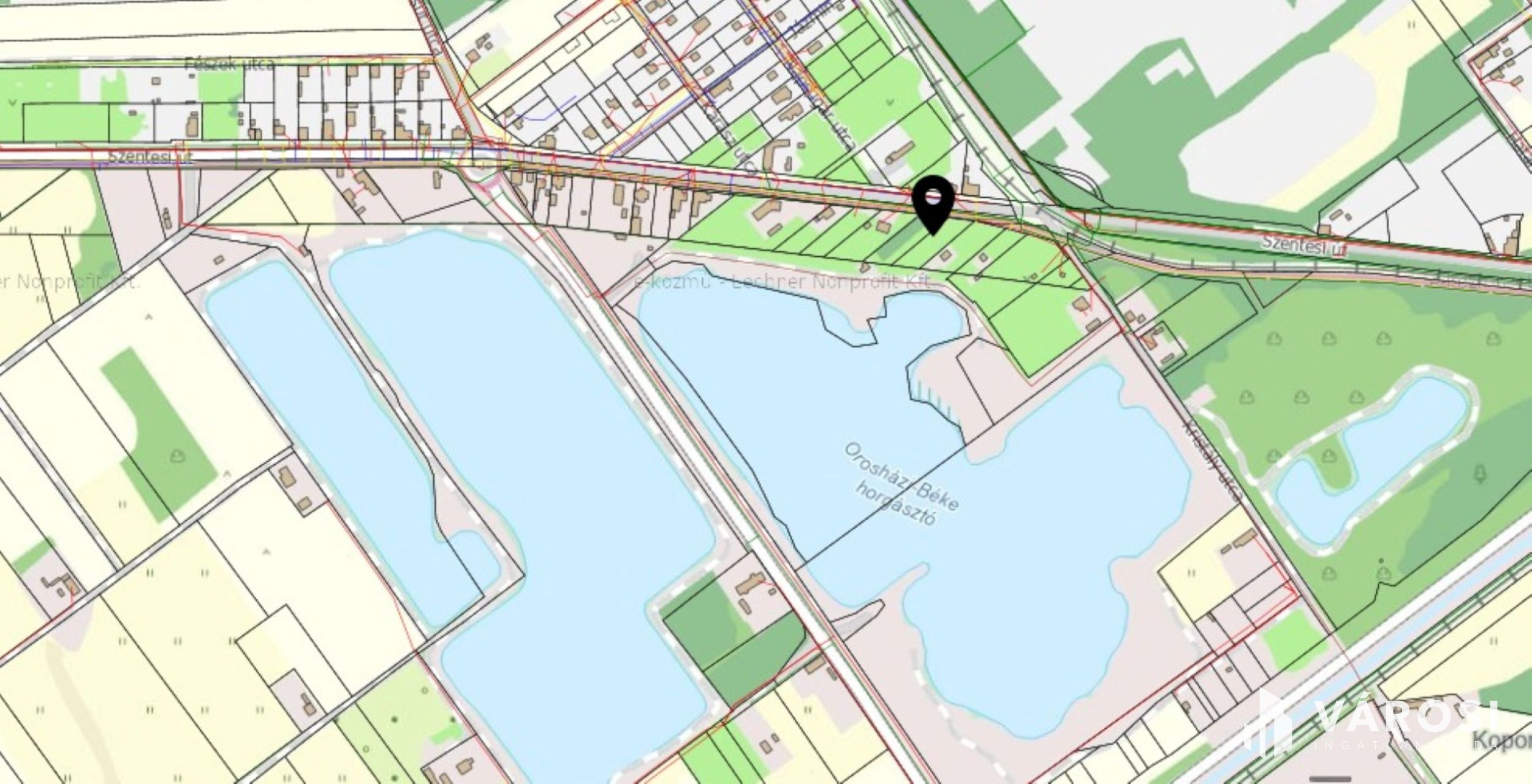 A villany már be van vezetve, a vezetékes ivóvíz, a gáz és a szennyvízhálózat pedig az utcában elérhető, így a közművesítés gyorsan, könnyen megoldható. A telken fúrt kút biztosítja az öntözés lehetőségét — nagy előny mind kertészkedők, mind építkezők számára.