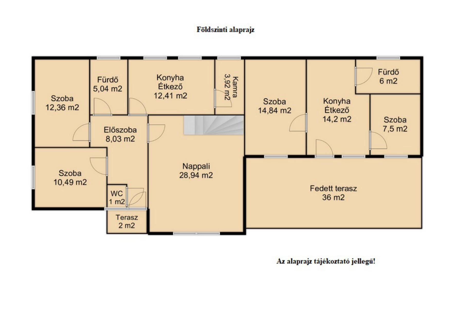 Fedett terasz területe: 36 m2.
