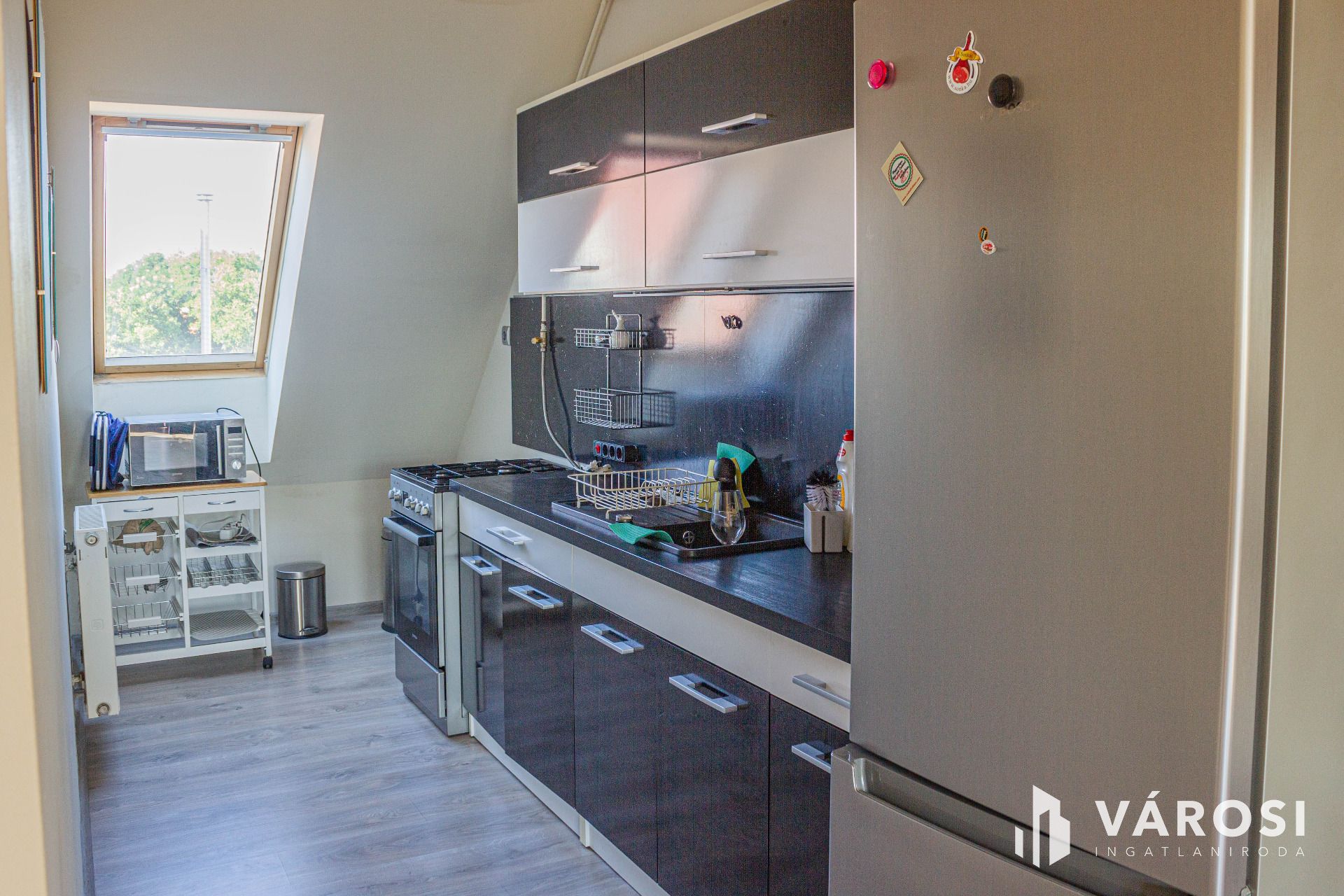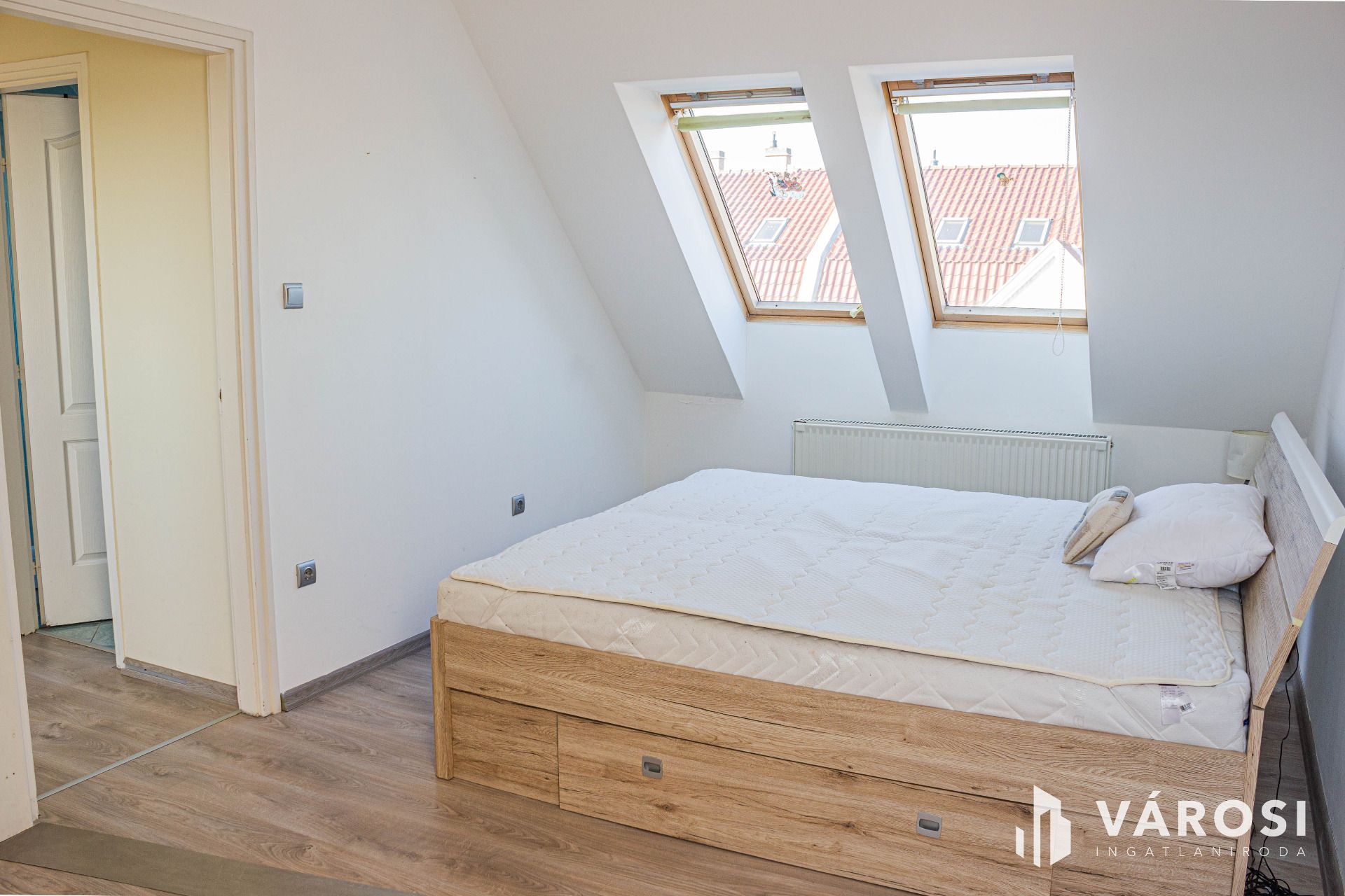 A sok ablaknak és tetőtérnek köszönhetően nagyon világos, napsütötte hangulatos lakásról van szó.