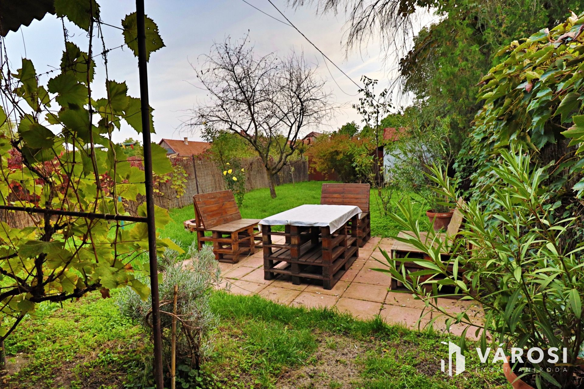 - a kis (elkerített) udvaron található egy tároló és egy fedett terasz
