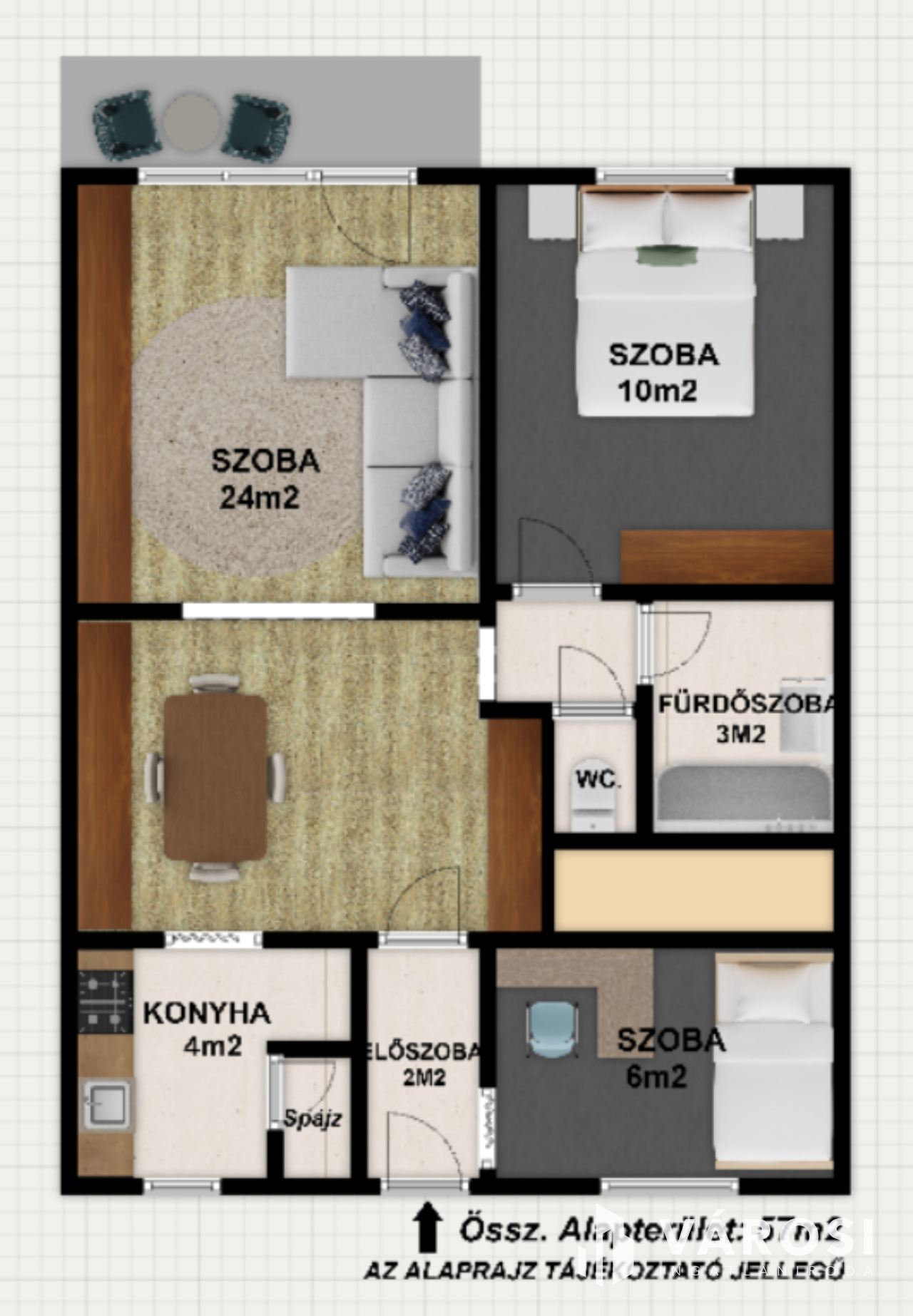• nappali + 2 külön nyíló hálószoba