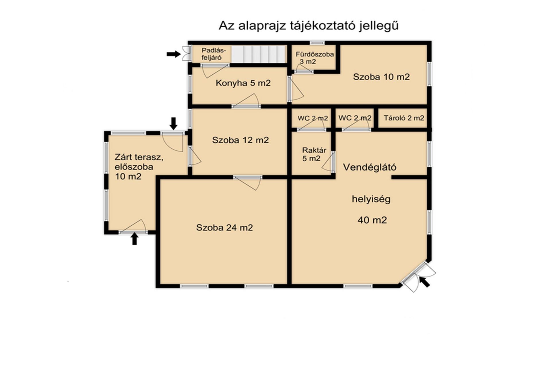 Az összesen 115 m2-es ház ugyanis helyet ad egy lakórésznek és egy jelenleg is vendéglátó egységnek nyilvántartott területnek, amelyek külön bejáraton keresztül közelíthetőek meg. Az üzleti rész 51 m2, ahol egy nagy légterű helyiség, raktár, és Wc-k vannak, bejárata közvetlenül az utcáról nyílik. A lakóház 64 m2, 3 szobából egy kisebb konyhából, fürdőszobából és a teraszból áll. Vegyes falazatú, fűtése jelenleg gázkonvektorokkal és egy csempe kályhával megoldott. A ház alatt egy közel 30 m2-es pince terül el. Fás, bokros udvarán egy jó állapotú melléképület is található, ahol van egy 10 m2 fűthető lakrész, valamint tárolók és kamrák. Az udvaron áll még egy góré és ólak.