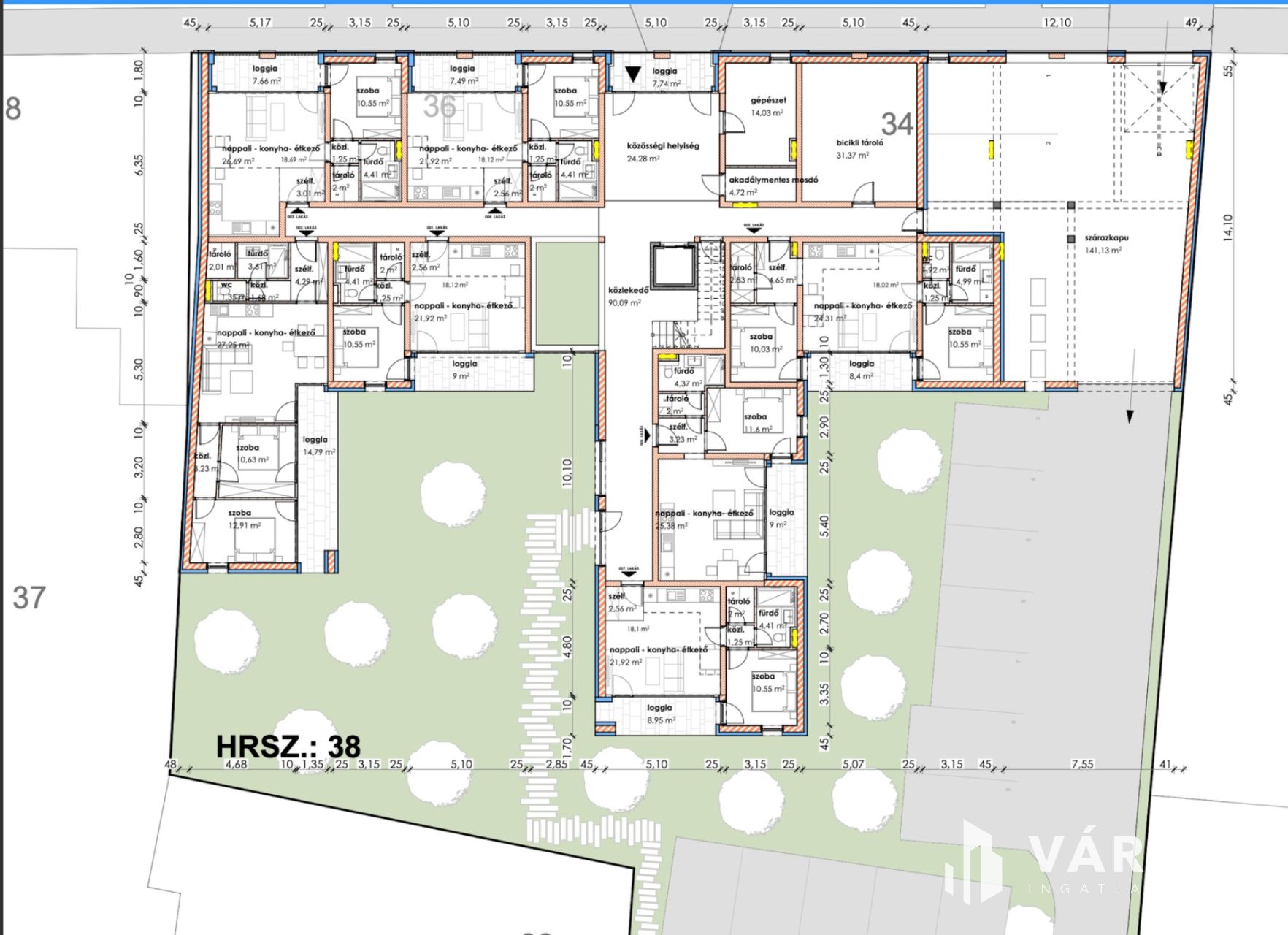 Makón, presztizs lokációval rendelkező - Makói fürdőtől 30 méterre - a Szent János téren - A Napfény Residenceben - , Eladó egy most induló, tégla építésű, ELSŐ EMELETI , 68,32 nm-es élettérrel rendelkező, amerikai konyha nappali plusz kettő szobás loggiás lakás (109.lakás), liftes házban.