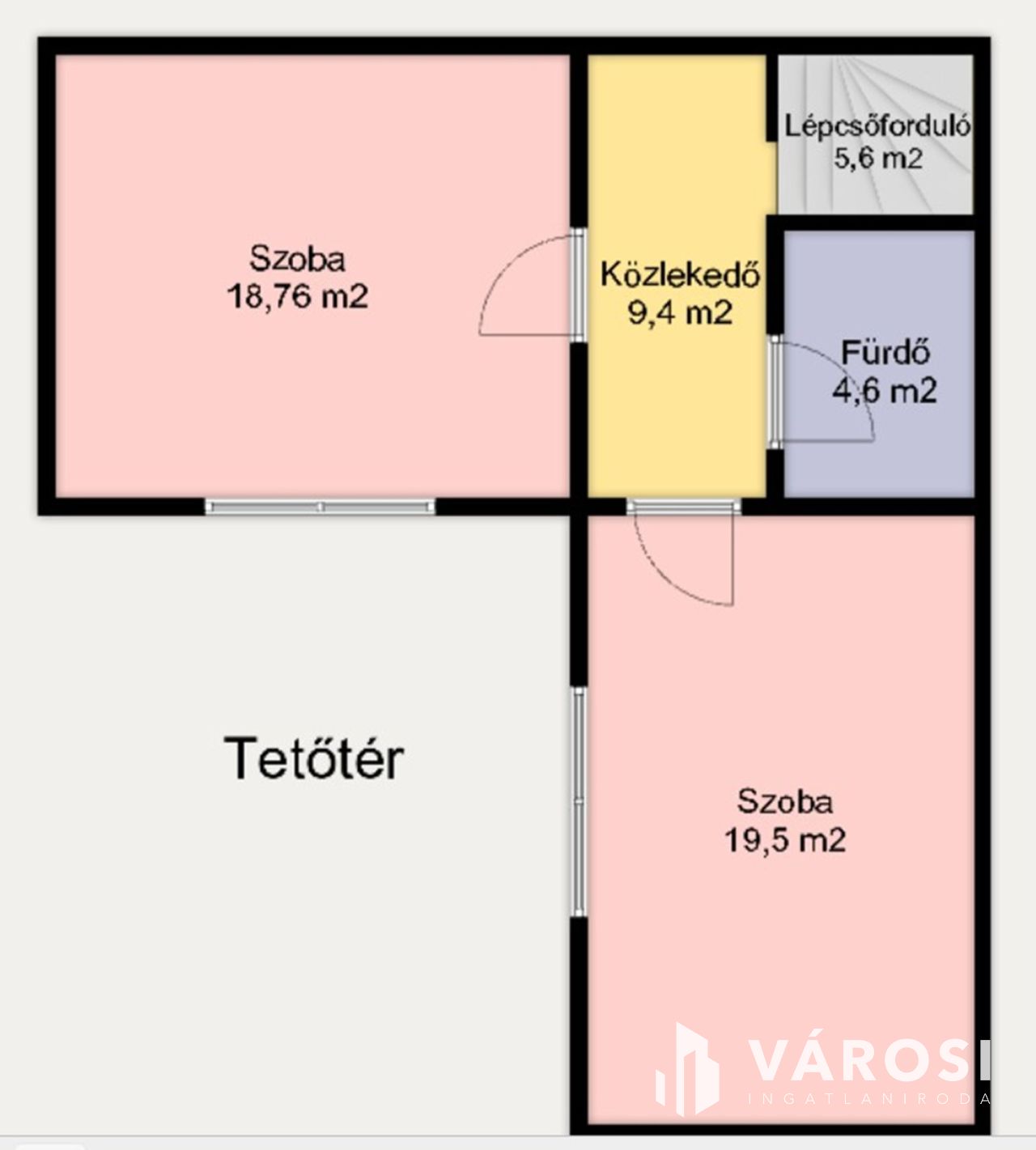 Klimatizált, jó elrendezésű, amit a csatolt alaprajzokon is megtekinthet. Az alaprajzokon a tényleges négyzetmétert tüntettem fel, de a tetőtér dőlését beszámítva a hasznos alapterület kb. 95 m2, ez szerepel egyébként a tulajdoni lapon is.