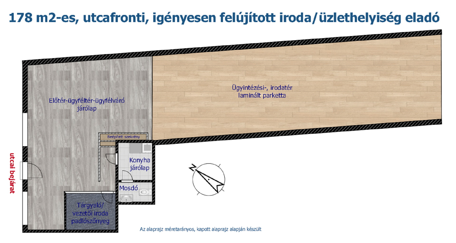 Igényesen felújított, utcai bejáratú, 178 m2-es iroda eladó