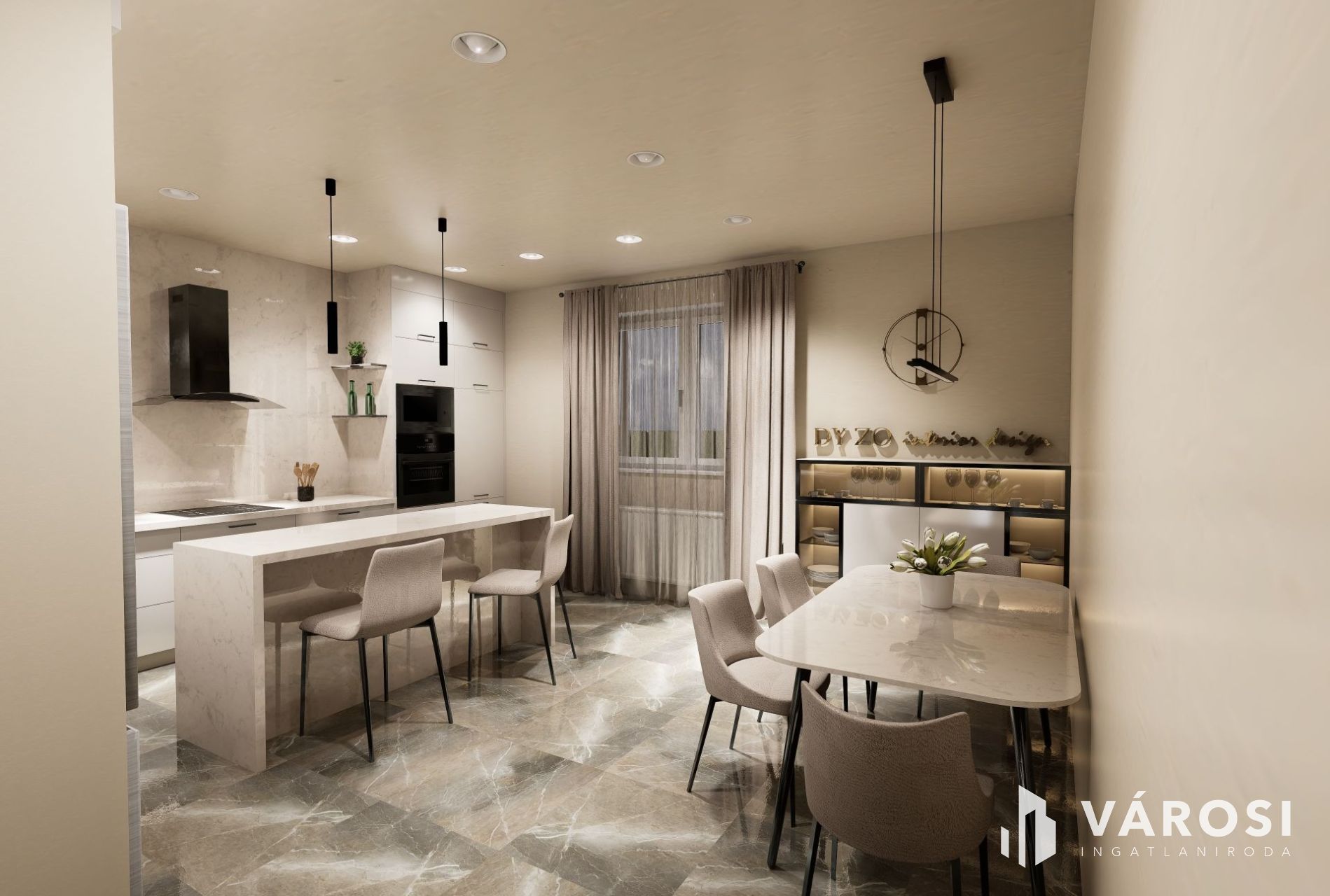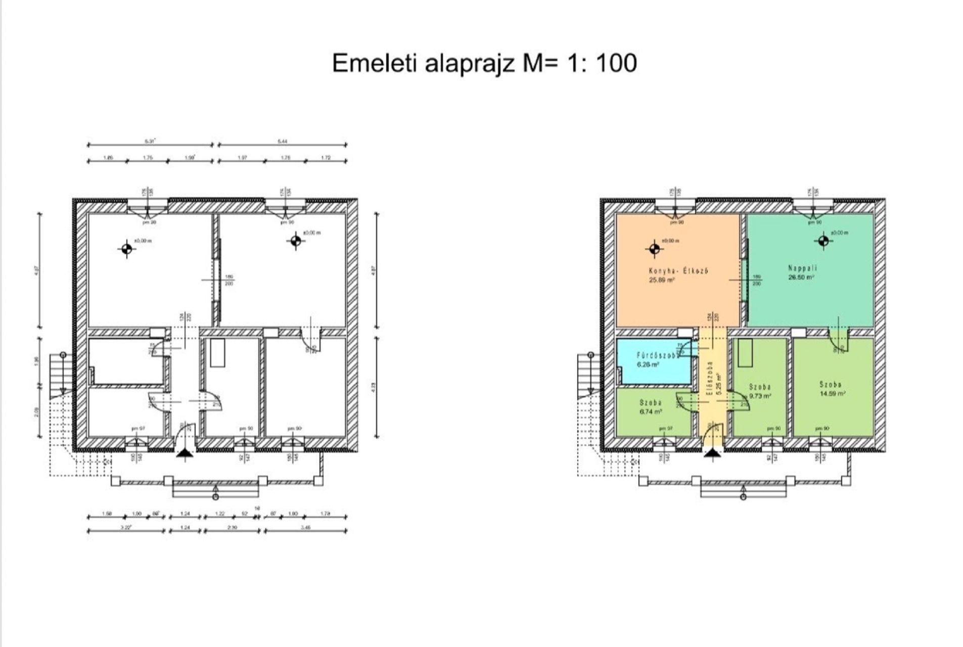 3 hálószoba + amerikai stílusú konyha-étkező,
