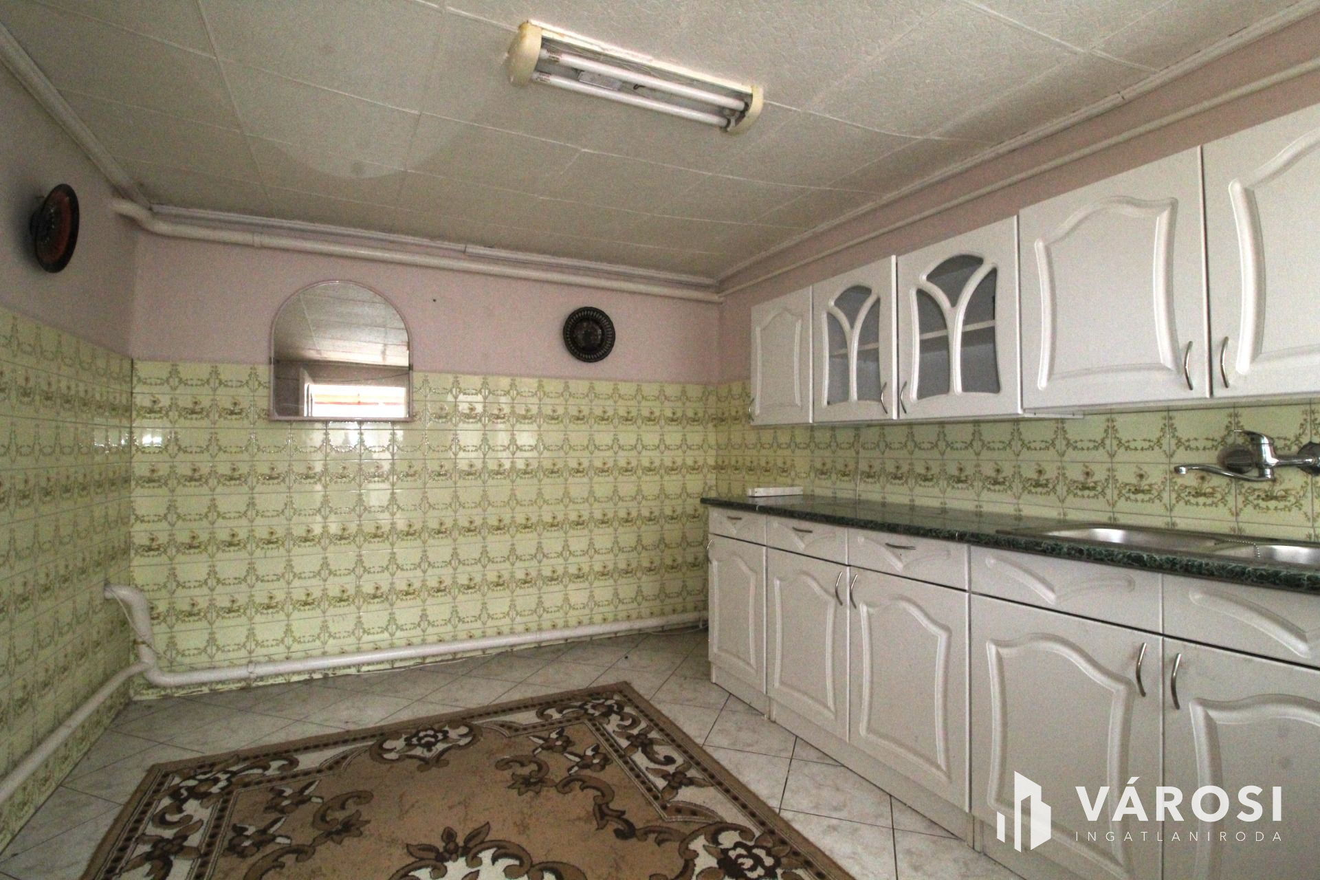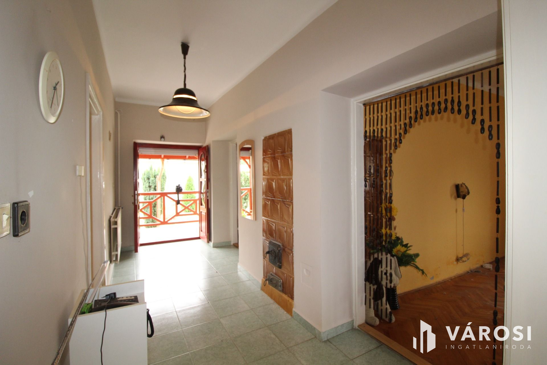 Az ingatlan jó állapotú, korszerű műanyag ablakokkal, hőszigetelt borovi fenyő bejárati ajtókkal. A szobák parkettásak, a közös helyiségek hidegburkolatot kaptak. A hátsó ajtón keresztül a polikarbonáttal fedet teraszra jutunk ahonnan a konyha nyílik.