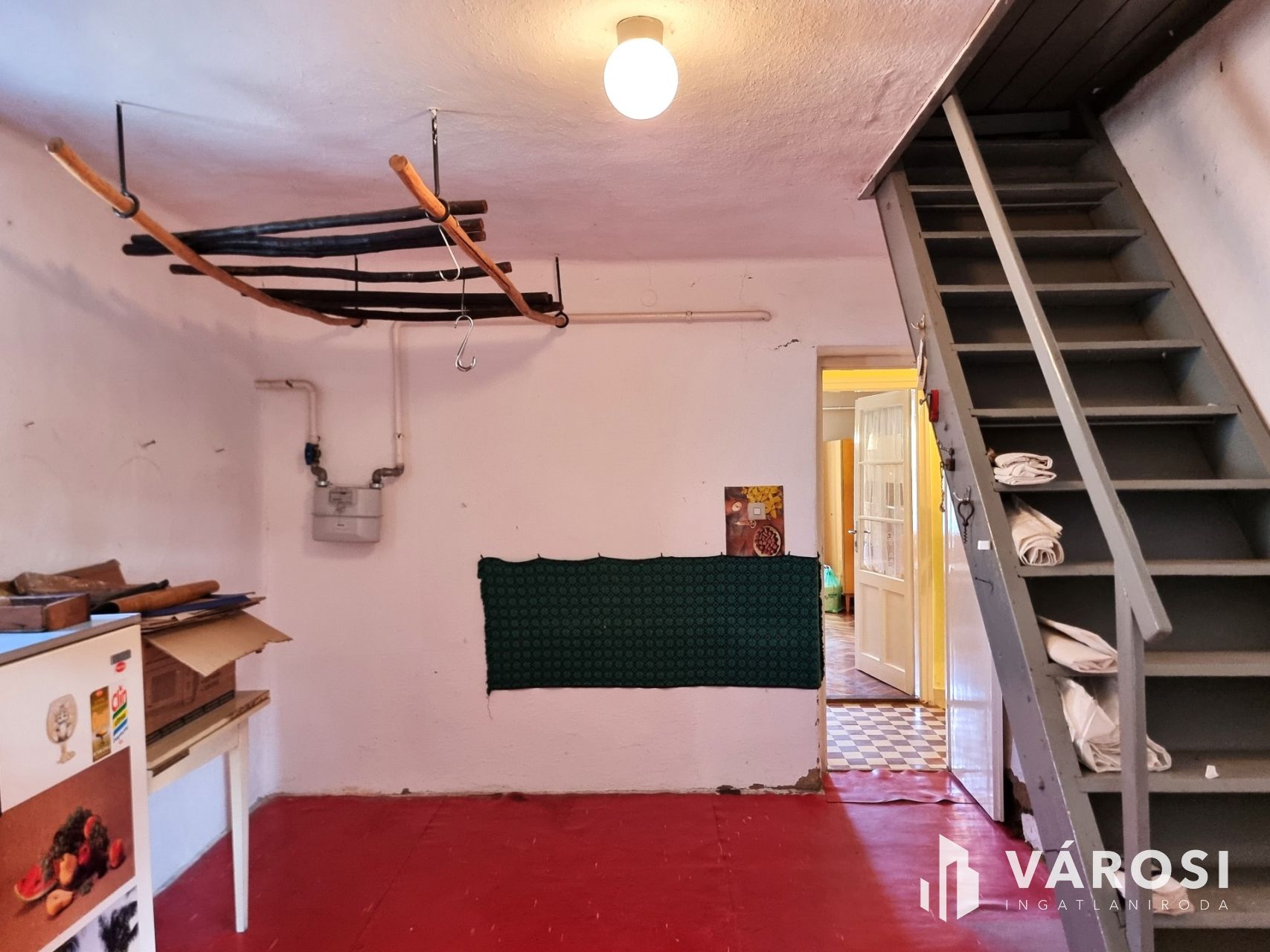 + A szobák aljzata szép állapotú, fa parkettás, a többi helyiségben régi mozaik lapok vannak.