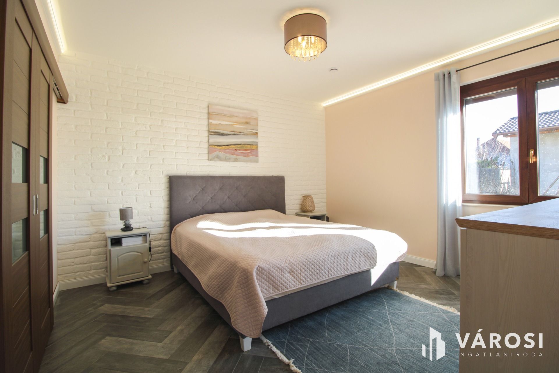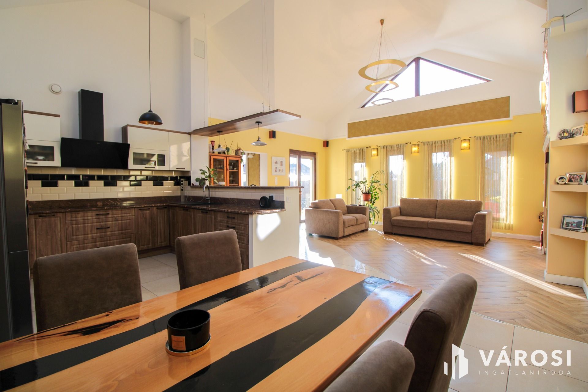 Az ingatlan elosztása és kialakítása a családi életre és a közösségi terek maximális kihasználására lett tervezve. Az amerikai konyhás nappali modern, letisztult stílusban készült, dekorvilágítással kiegészítve, amely otthonossá és barátságossá teszi a teret. 3 hálószoba, dupla fürdőszoba (egy kádas és egy zuhanyzós), háztartási helyiség, kamra és a szülői hálóban gardrób került kialakításra. A nappali a hátsó kertre nyíló, 45 m²-es teraszra vezet, amely tökéletes helyszínt biztosít a családi eseményeknek, ahol a kemence, a grillező, a szalonnasütő és a bográcsozó mind a kulináris élmények megélését szolgálják.