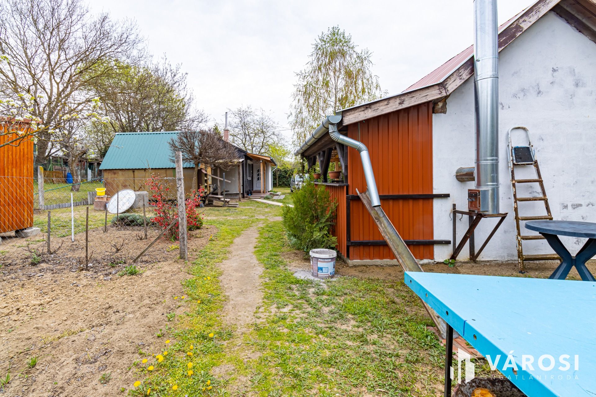 A körbekerített telek, két utca között helyezkedik el. Bár jelenleg egy bejárata van, akár a másik utcára is nyitható egy kapu.