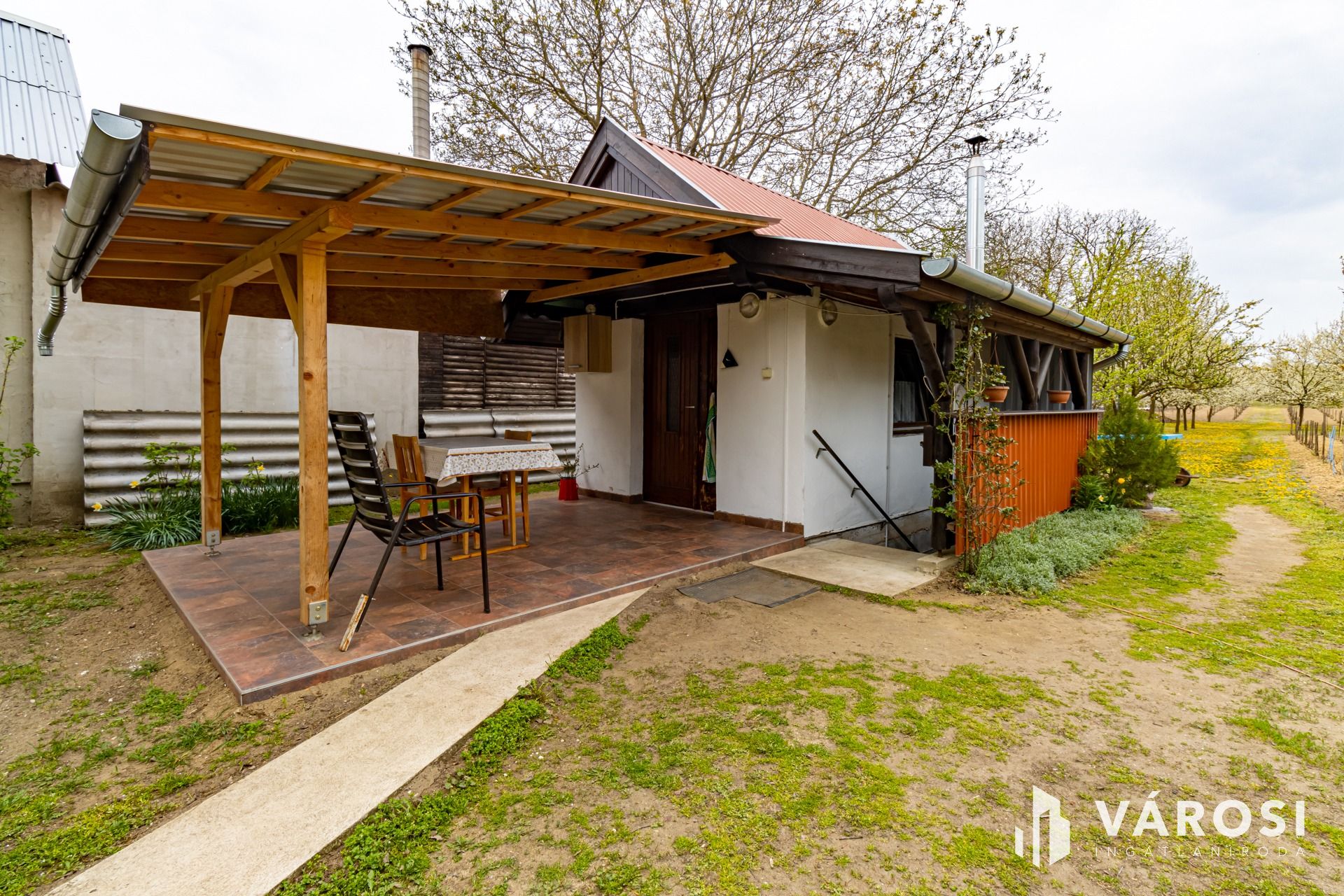 Szentmártonkáta, Tajti dűlőn, művelés alól kivont 2583 m2 zártkert, téliesített, szigetelt faházzal, tégla építésű, teljesen alápincézett, teraszos nyári konyhával, fém szerszámtárolóval eladó.