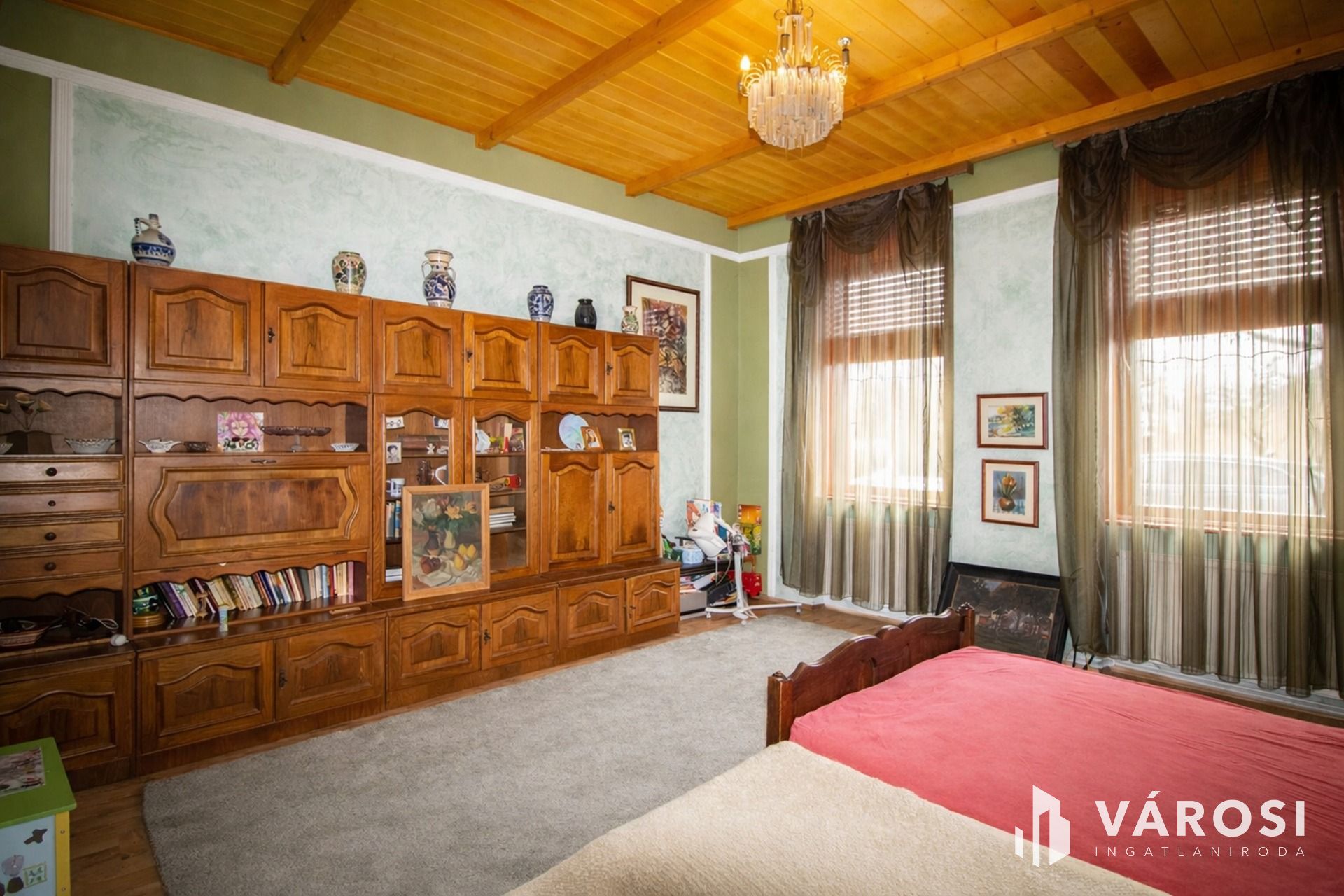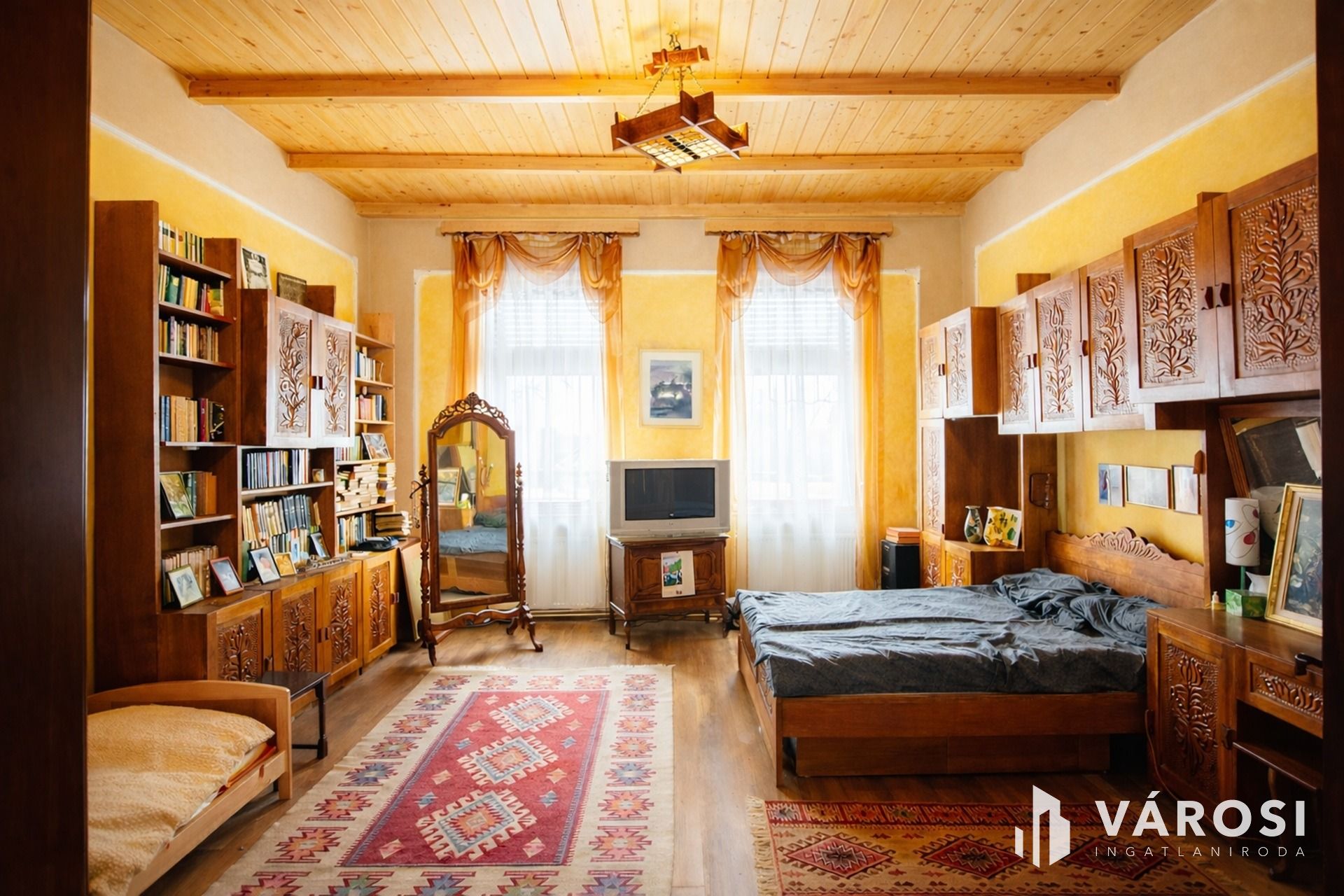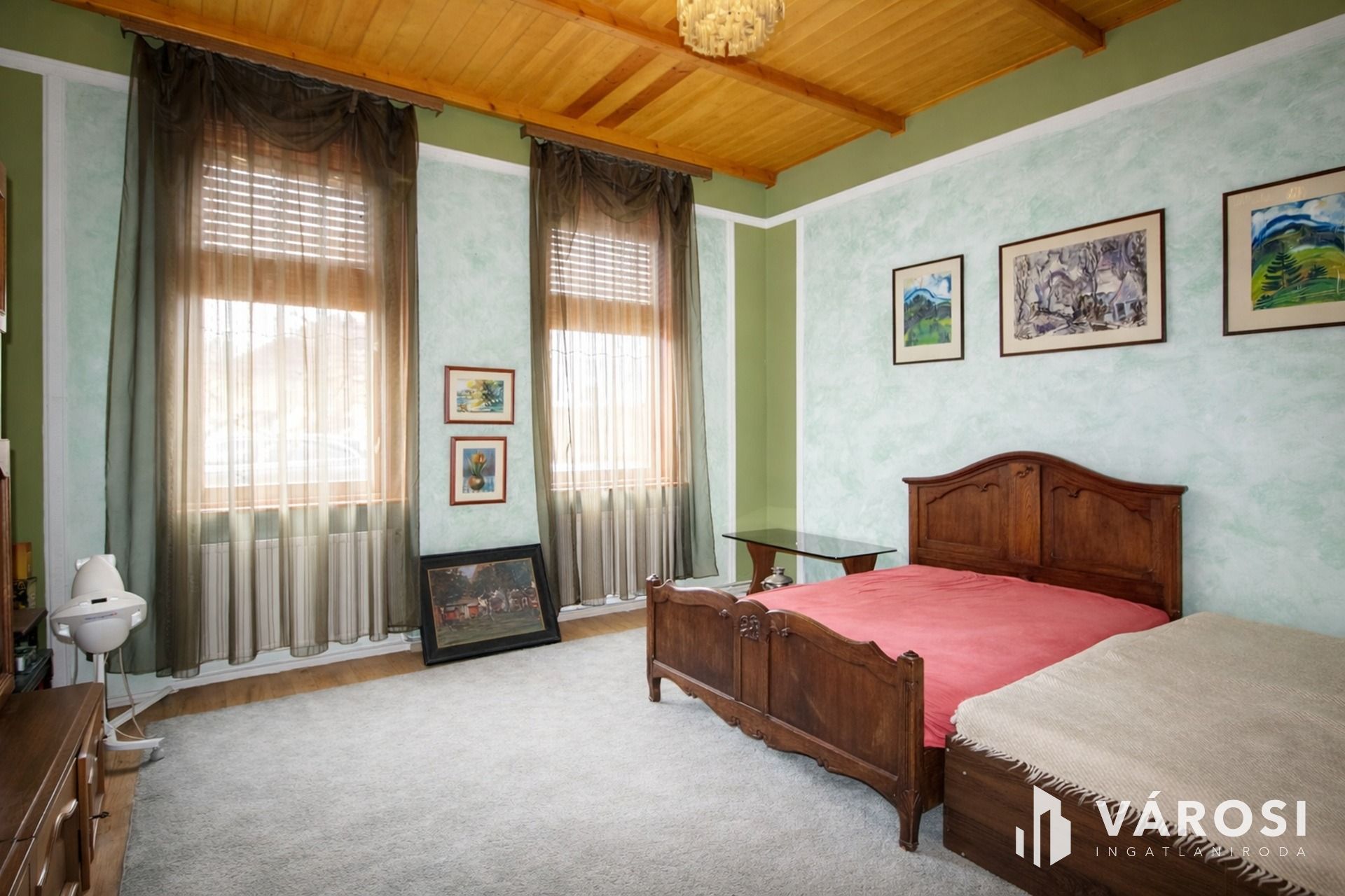 Békéscsaba belvárosában vált elérhetővé egy valóban ritka karakterű, patinás nagypolgári otthon, ahol az arányok, a terek és a részletek mind azt az időt idézik, amikor egy ház nemcsak funkció volt, hanem státusz és életforma is. Az 1920-as években épült, tégla alapra és téglafalazattal készült épület magas belmagassága ma is lenyűgöző, az eredetileg közel 4,5 méteres térérzet álmennyezettel lett finoman visszafogva, miközben a mennyezet szigetelést is kapott. A ház külső megjelenése kőporozott homlokzatával és arányos tömegével méltóságteljesen simul bele a belvárosi környezetbe, miközben a tetőszerkezet és a héjazat körülbelül tizenöt éve újult meg.