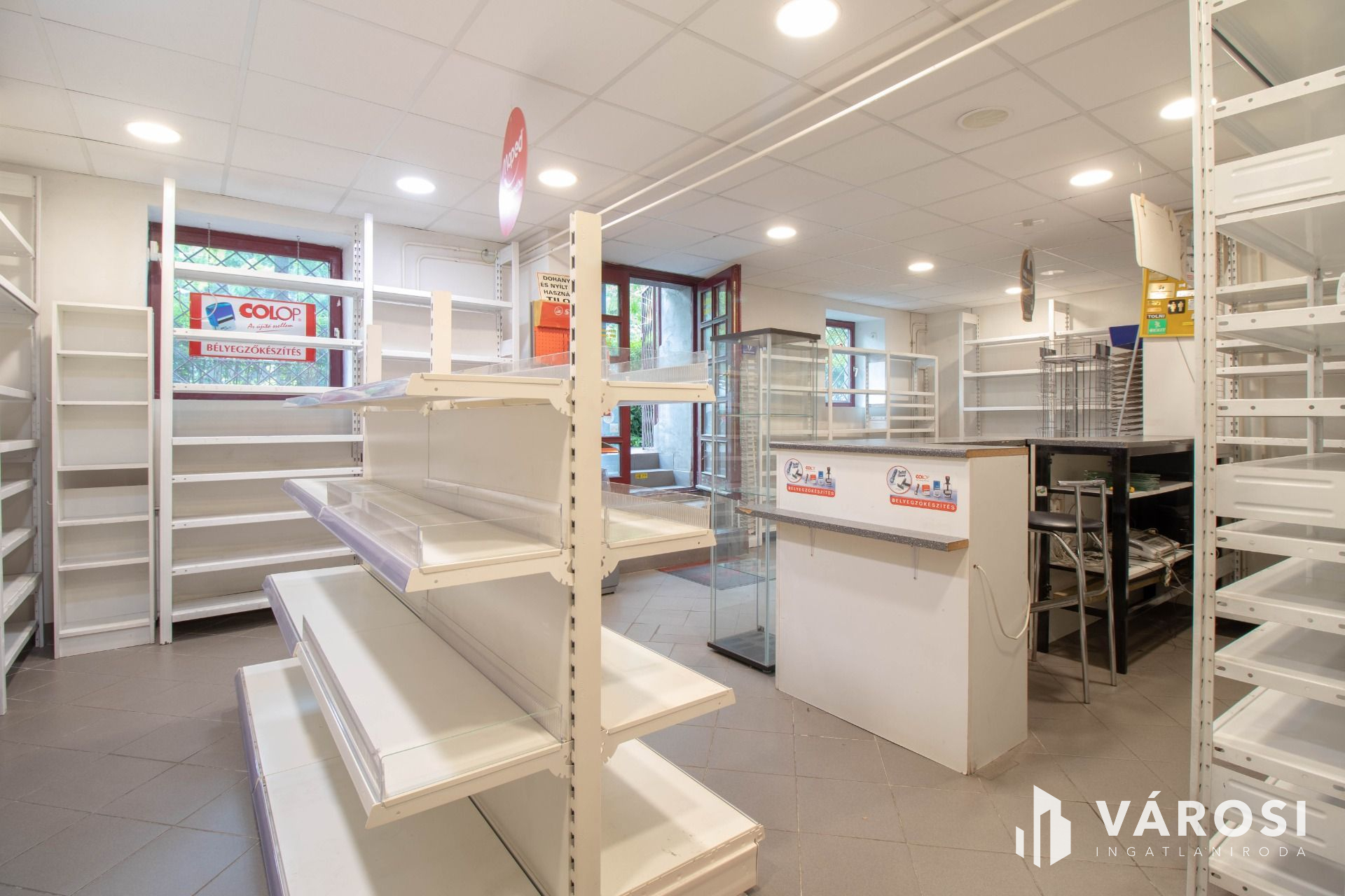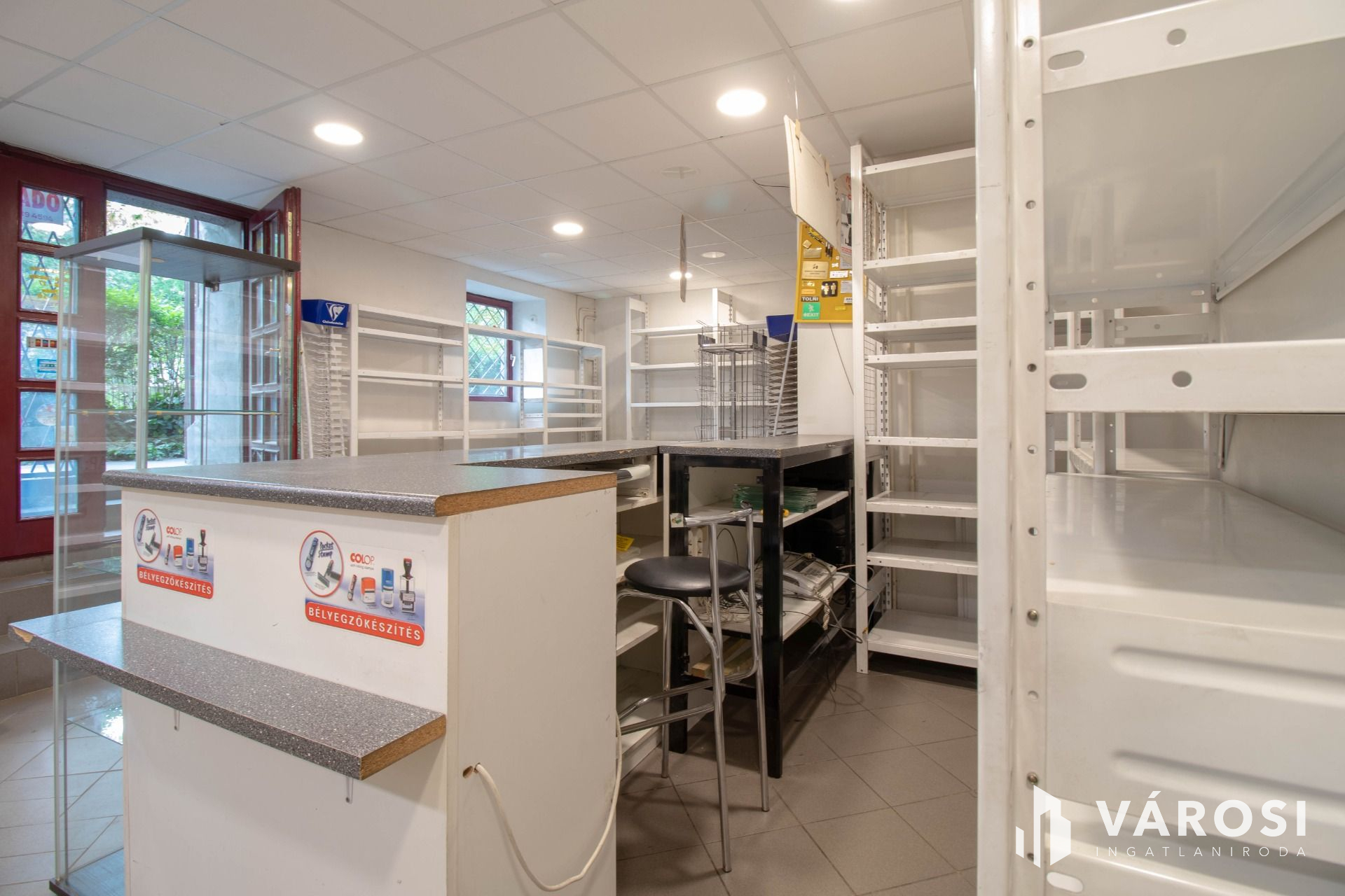 A fotókon is látható módon az üzlet világos, ablakos, bejárata közvetlenül az utcáról nyílik.