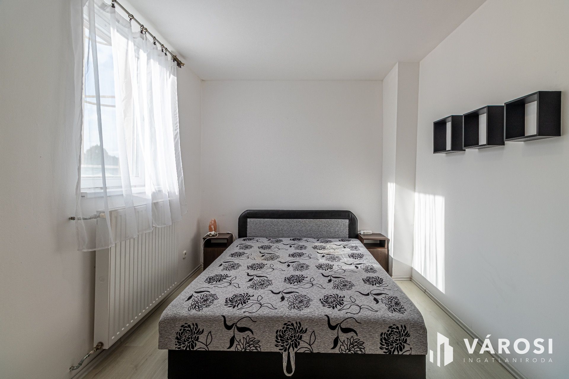 A lakás elosztása praktikus: kettő szobából, egy nappaliból, egy amerikai konyhából és egy fürdőszobából áll. A modern igényeknek megfelelően az ingatlan klímával felszerelt, és a villamoshálózat is nemrégiben került felújításra, ami hozzájárul az alacsony fenntartási költségekhez.
