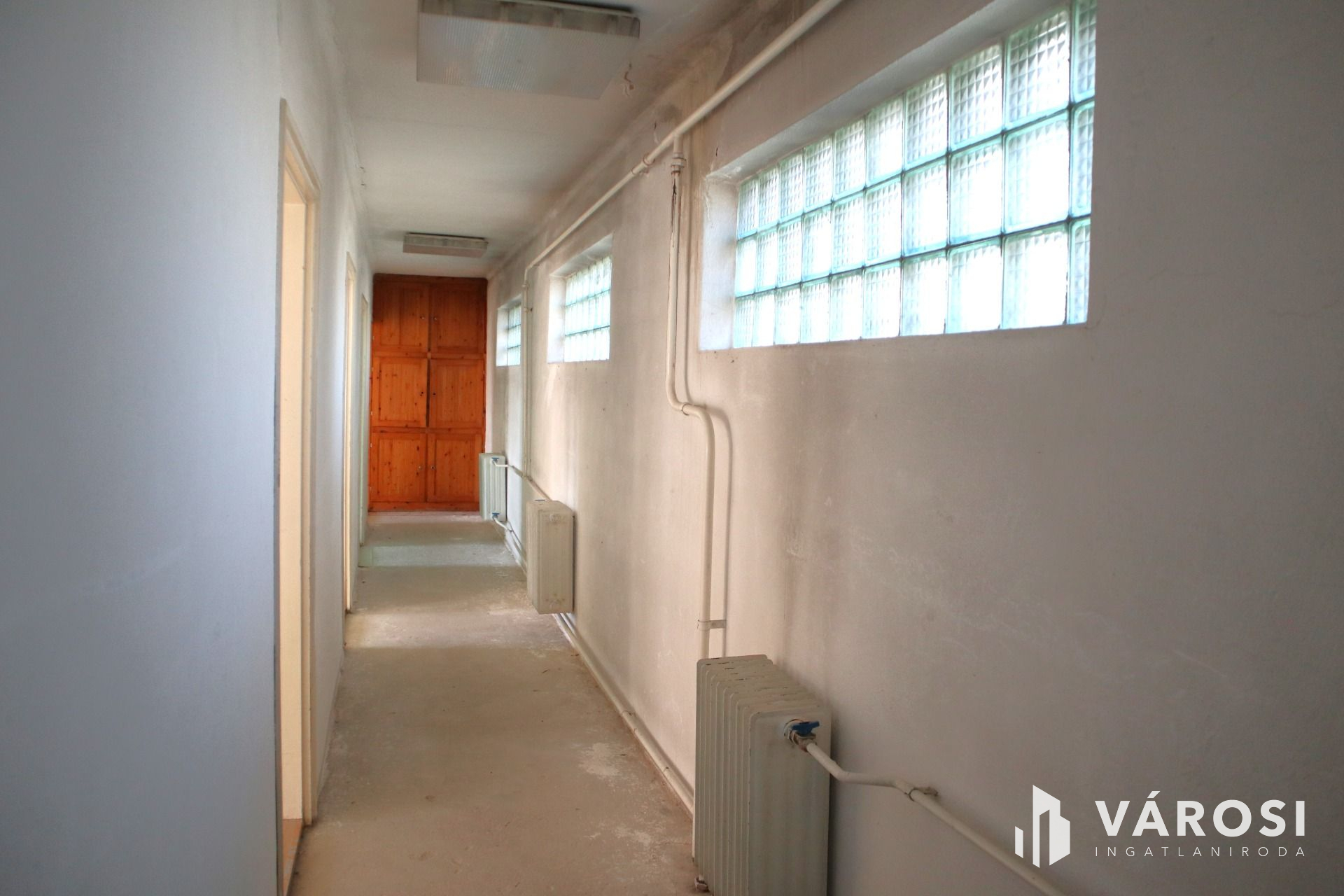 - Emeleten található 7 közel hasonló, 10-13m2 nagyságú szoba/iroda, melyek mind egy 15m hosszú folyosóról nyílnak, plusz egy raktár és a lépcsőház. Itt beépített szekrények segítik a praktikus tárolást.