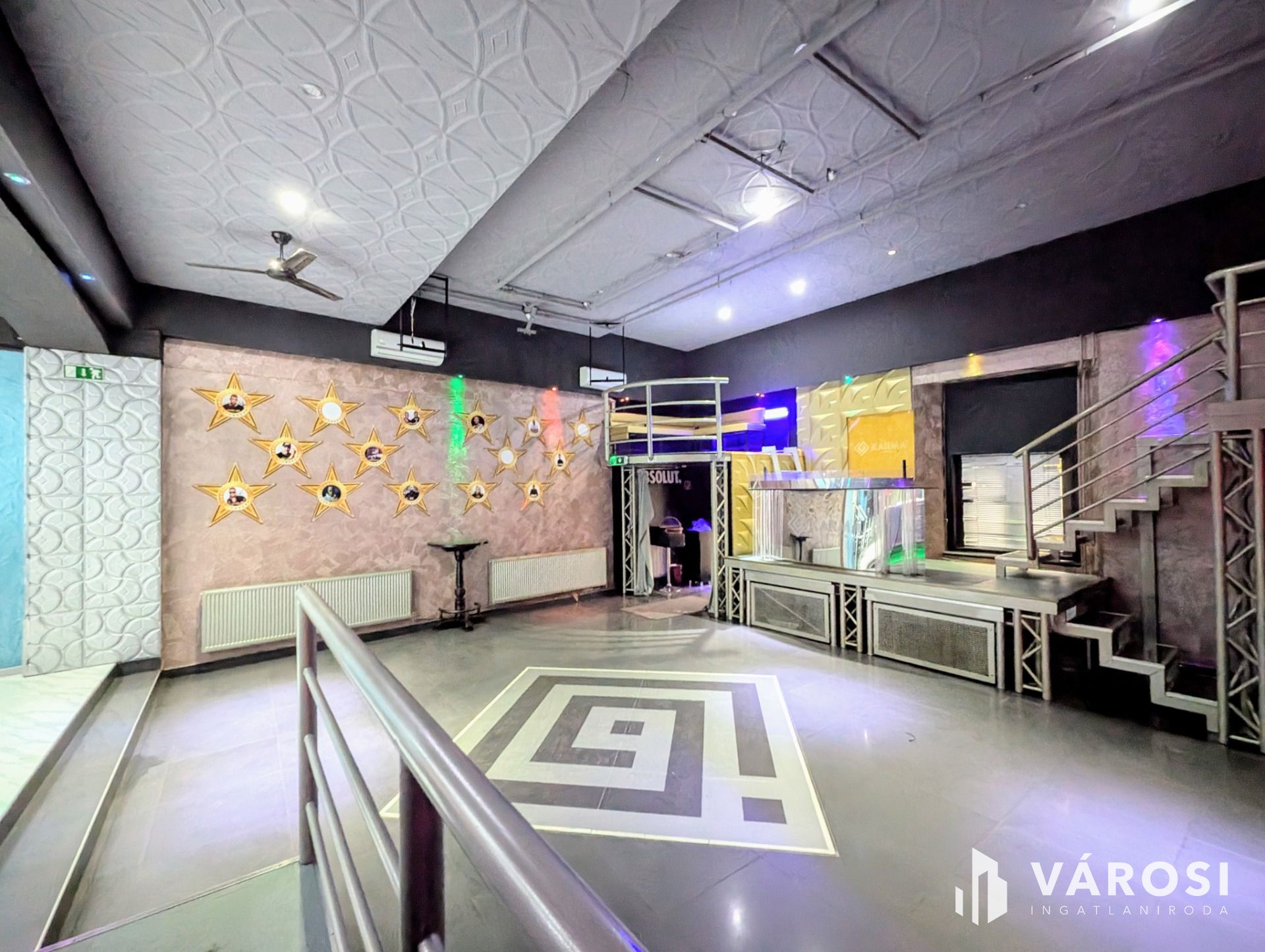 Az ingatlan nagy belső terekkel rendelkezik, ugyanakkor tagolt elosztású, így biztosítva a különböző igényű vendégek kiszolgálását: tánctér, koktélozó bár, panorámás zárt és nyitott terasz, privát részleg, elkülönülő galériák. A kiszolgáló egységek is teljes körűek: vizesblokkok, tárolók, személyzeti helyiségek, iroda...