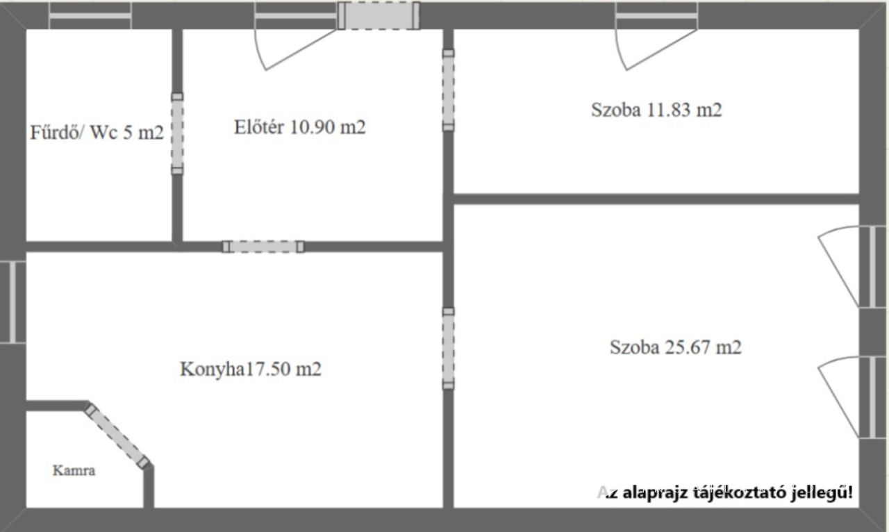 A lakóházban 2 nagyszoba, konyha, előtér, fürdőszoba benne WC-vel, kamra helyiségek találhatóak. Az ingatlan átlagos állapotban van, azonban alacsony fenntartási költséggel rendelkezik. A telek mérete 1120 m², így elegendő terület áll rendelkezésre a kertészkedéshez vagy akár egy kis állat tartásához is. Az ingatlan aláfalazása és vizszigetelése megtörtént így önnek ezzel már nem kell foglalkozni