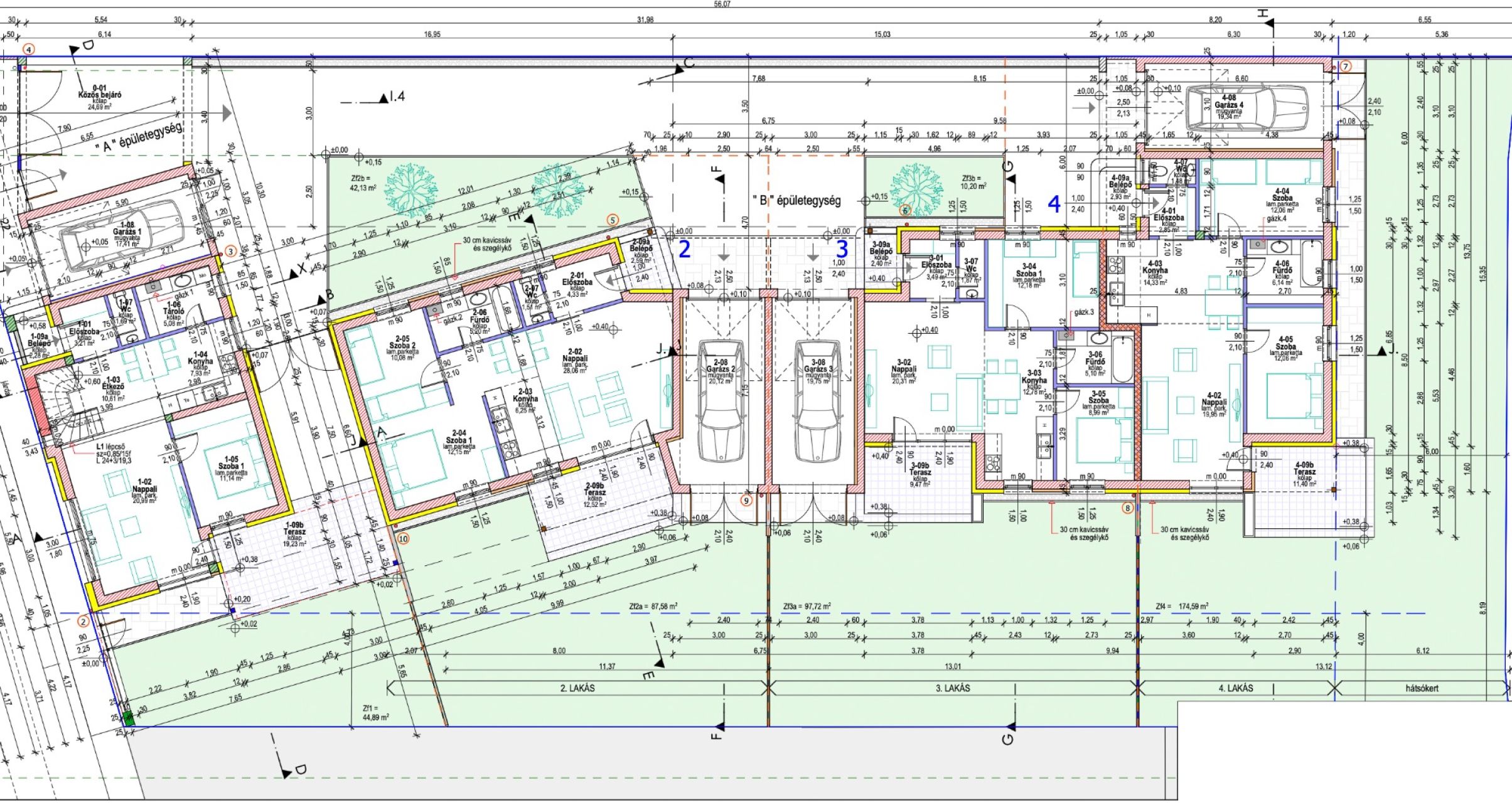 - 104 m² lakótér (földszint: 60,65 nm, tetőtér: 43,82 nm)
